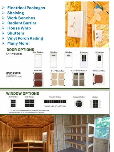 Choice of painted wood siding, treated T1-11 siding or metal siding.