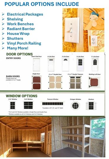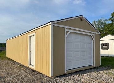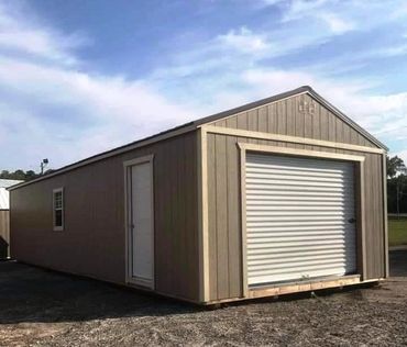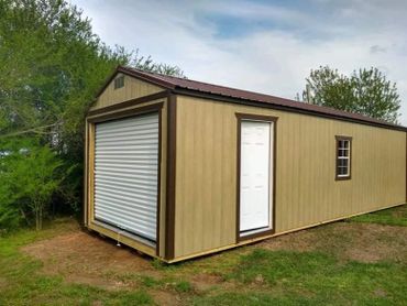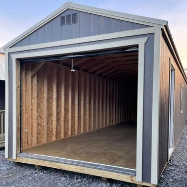 Garage models come with a 9ft wide roll up door for easy access in and out.