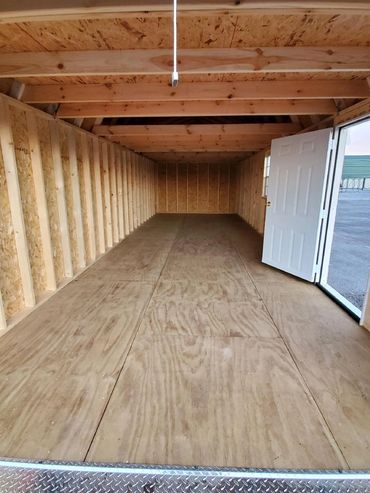 Reinforced flooring: 2x6 treated floor joists on 12" centers, capped with our high strength treated plywood decking. Built to hold the weight!
